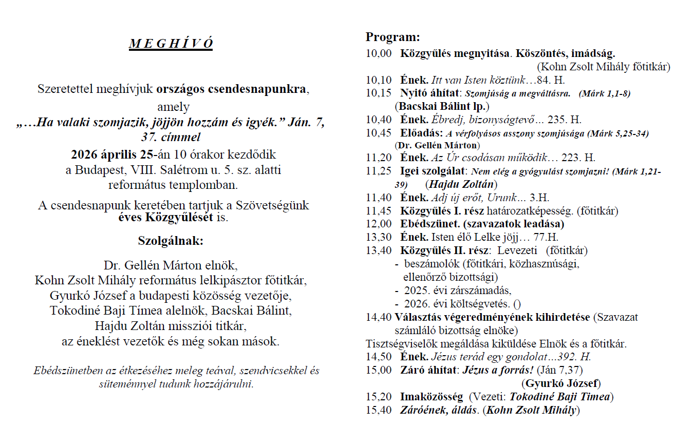 Az elmúlt 34 évben a távközlésben dolgoztam, amíg váratlanul hívattak hármunkat az osztály-ról, hogy leépítés miatt másnap már nem kell bemennünk dolgozni. Tudtam, hogy Isten állított meg, és Ő akar új útra vinni. Először is hálát adtam az elmúlt másfél évért, amit azon a remek munkahe-lyen tölthettem. Másnap nem az volt az első, hogy új munkahelyet keressek, hagytam magamnak időt, és vártam, Isten mit szeretne velem kezdeni. Érdekes volt kívülről nézni azt a mókuskereket, amiben nemrég még benne voltam, jó volt lelassulni. Furcsa érzés volt reggelente, hogy nem kell mennem… De akkor mit kell mégis tennem? Ha az emberről lefejtjük a munkáját, a szakmáját, akkor mi marad? Próbáltam hasznosan eltölteni időmet, de egy minimálbért sem tudtam összedolgozni a ház körül. Mennyit érek így? Vagy rossz a mérce? De volt időm a családomra és bibliai táborokra. Ezután felhívott egy régi ismerősöm, aki munkát ajánlott. Így – mire befejezem soraimat – augusztus végétől újra dolgozom. Halleluja! <>Nagy Zsolt Zoltán